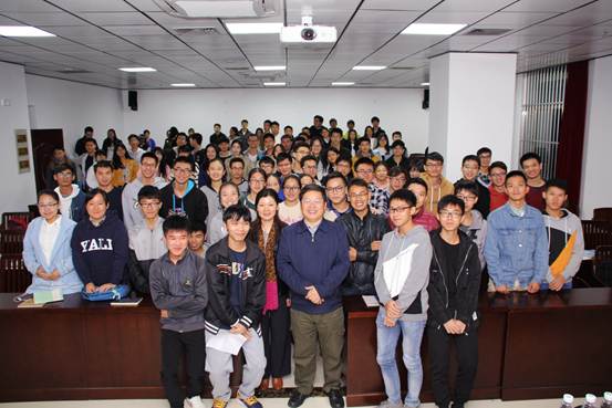 在讲述广西作为海上丝绸之路的起点、介绍“一带一路”发展对于“海洋科学”专业未来的巨大潜力时,吴教授还结合了以前学生工作、教学以及科研工作的亲身经历,强调了同学们学好英文的重要性,并为同学们“定个小目标”:大二之前通过大学英语四级考试(CET4),大三努力通过大学英语六级考试(CET6)。接下来的讲座中,吴教授围绕广西海洋渔业存在的问题、广西海水养殖业发展对策、广西海洋渔业十三五发展战略等三个命题,结合海洋生物生态、地理环境、经济贸易环境、海洋管理等为同学们详细讲述了广西海洋渔业所面临的机遇与挑战、海水养殖业发展的理念与战略规划、海洋渔业“九个方面”的“一突破、而调整、三提升”战略目标等,深入浅出的学术讲解与海洋有关的“吃喝玩乐”文化产业进行结合,使同学们收获了精神食粮与物质食粮。互动环节中,同学们也结合自己的研究兴趣以及研究方向与吴教授进行了问答。