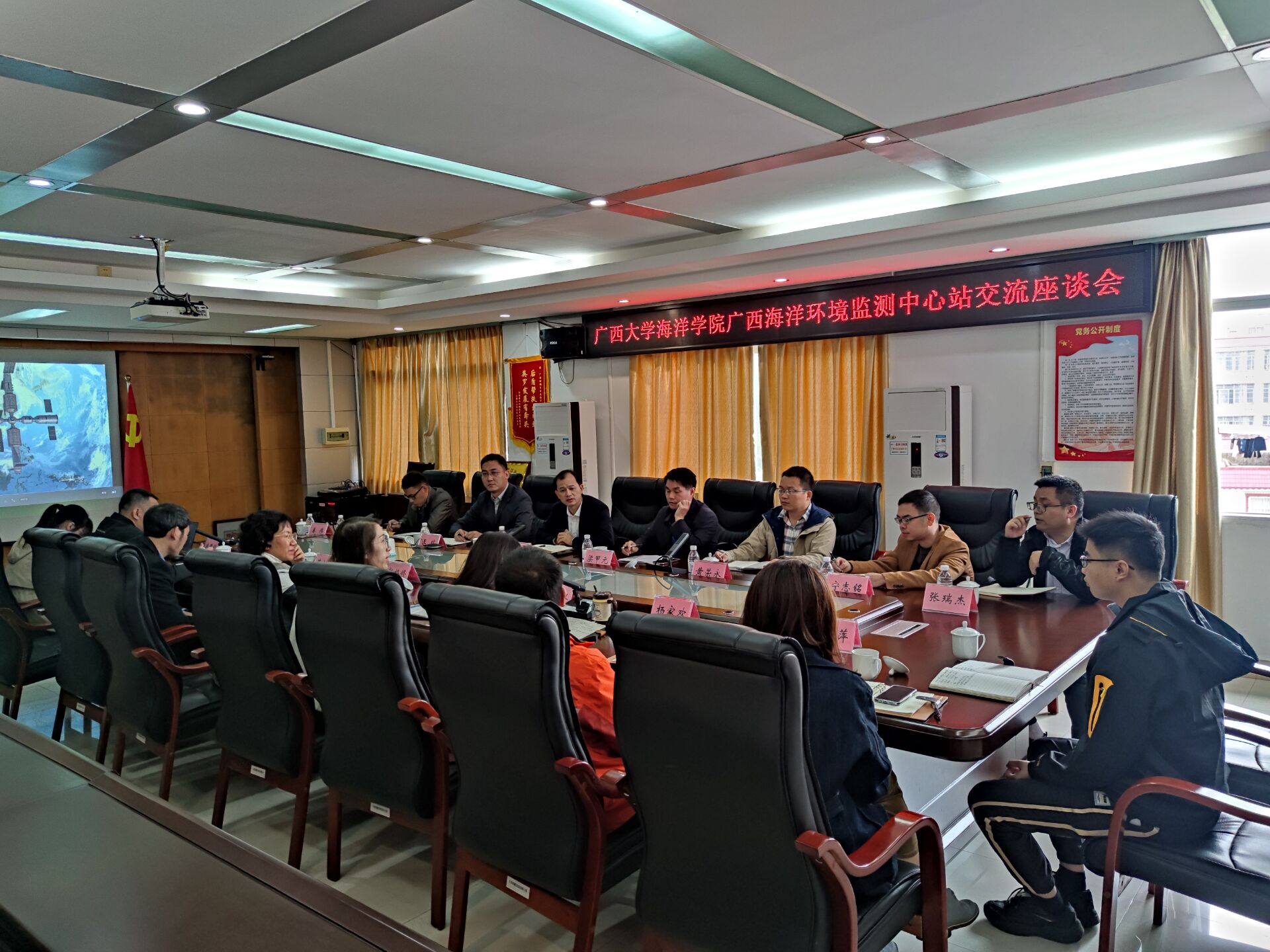 座谈会上,郭梅修站长对秦华东书记一行表示热烈欢迎,详细介绍了中心站的发展历程、业务发展和人才需求等情况。秦华东书记介绍了海洋学院在开展科学研究、教学实践、人才培养、平台建设等综合情况。双方就人才培养、科研合作、继续教育培训等方面进行了深入探讨,并希望双方今后能够开展更为紧密的合作,共同为广西海洋事业发展贡献力量。