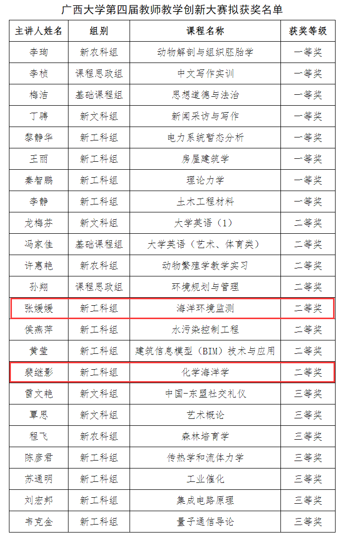 广西大学举办的第四届教师教学创新大赛,旨在进一步推动高等教育教学改革创新,大力弘扬教育家精神,提升高校教师教学水平和育人能力,引导广大教师潜心教书育人。学院响应号召,组织教师团队积极参赛。
