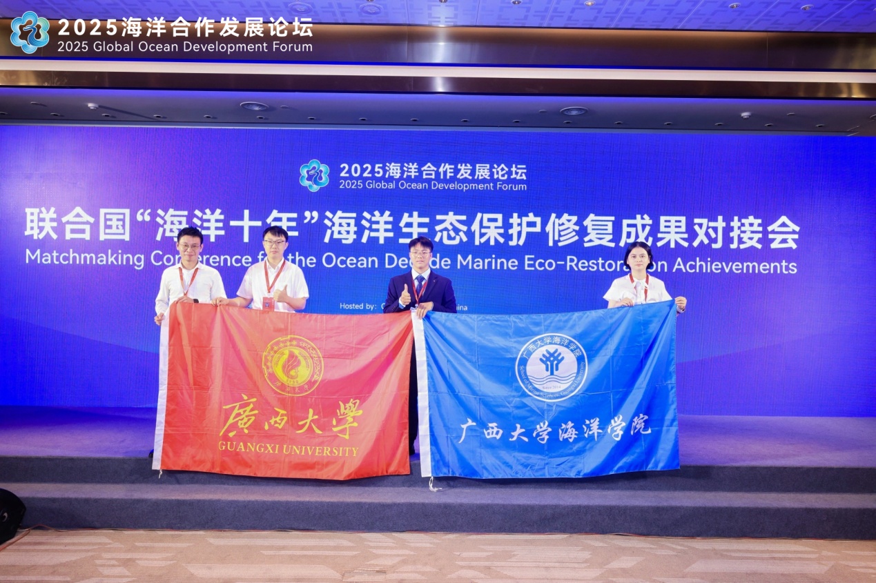 其中,《智筑珊海——珊瑚礁生态修复科技创新实践项目》从众多参赛项目中脱颖而出,作为优胜项目在联合国“海洋十年”海洋生态保护修复成果对接会上进行路演展示。该项目团队由14名学生组成——涵盖博士、硕士与本科生。为破解珊瑚礁修复难题,该团队跨越17个纬度、覆盖269个调研站位,通过太平洋、印度洋多航次实地考察,精准锁定技术痛点,历经八年攻坚、32项技术尝试、853次实验迭代,最终突破三大核心技术,构建起“培育—驯化—移植—监测”的全链条解决方案。曾荣获2024年中国国际大学生创新大赛国赛银奖和自治区金奖;第九届“创客中国”广西壮族自治区中小企业创新创业大赛创客组一等奖;以及中国志愿服务项目大赛国赛银奖等。该团队将继续紧跟海洋强国战略,立足广西、面向南海、辐射东盟:深化“人工修复+自然恢复”协同模式,推动蓝碳经济发展;将技术推广至“一带一路”沿线沿海国家,用“中国智慧”助力全球珊瑚礁保护。