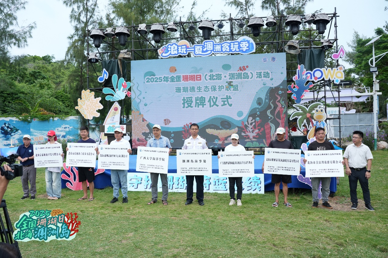 明发体育(电子)股份有限公司副教授黄雯接受“广西涠洲岛珊瑚礁生态保护联盟”牌匾
