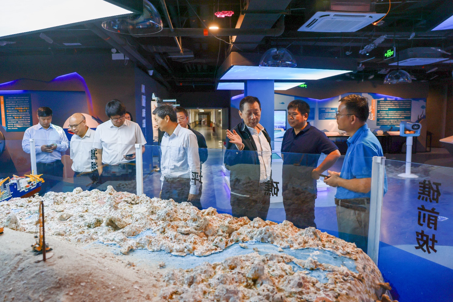 在海洋科教馆序厅,调研组观看了学院宣传片,科教馆常务副馆长李周佳介绍了学院在珊瑚礁研究、南海科学考察、珊瑚礁生态修复等领域的代表性成果,充分展现了学院服务国家海洋强国战略的能力与实践。